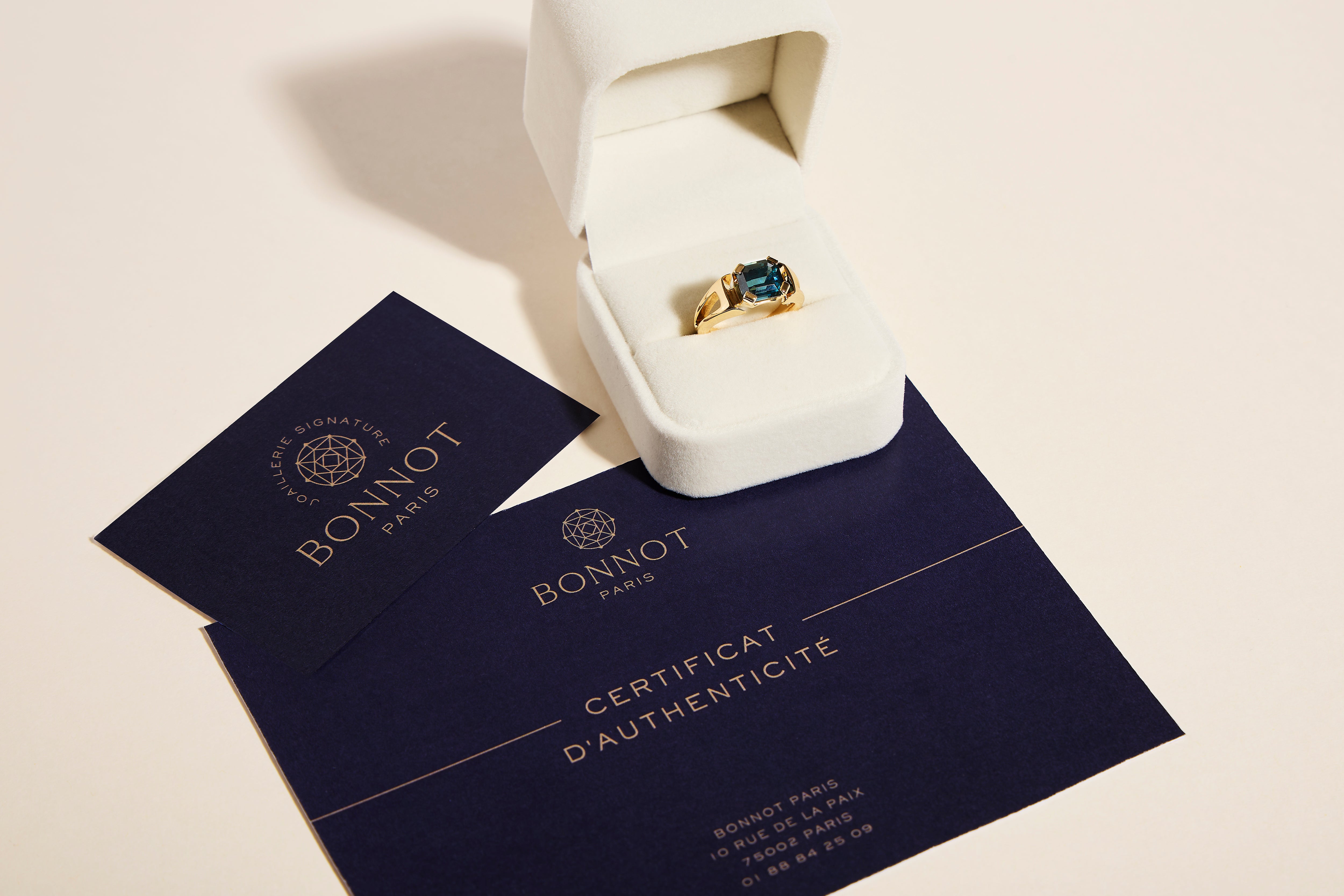 Une fois les pierres et le design validés, nos artisans joailliers façonnent votre création à la main dans nos ateliers, selon les plus hauts standards d’excellence de la Maison Bonnot Paris.