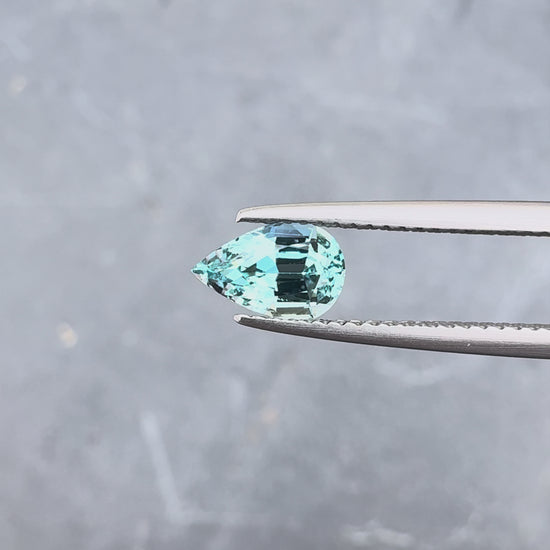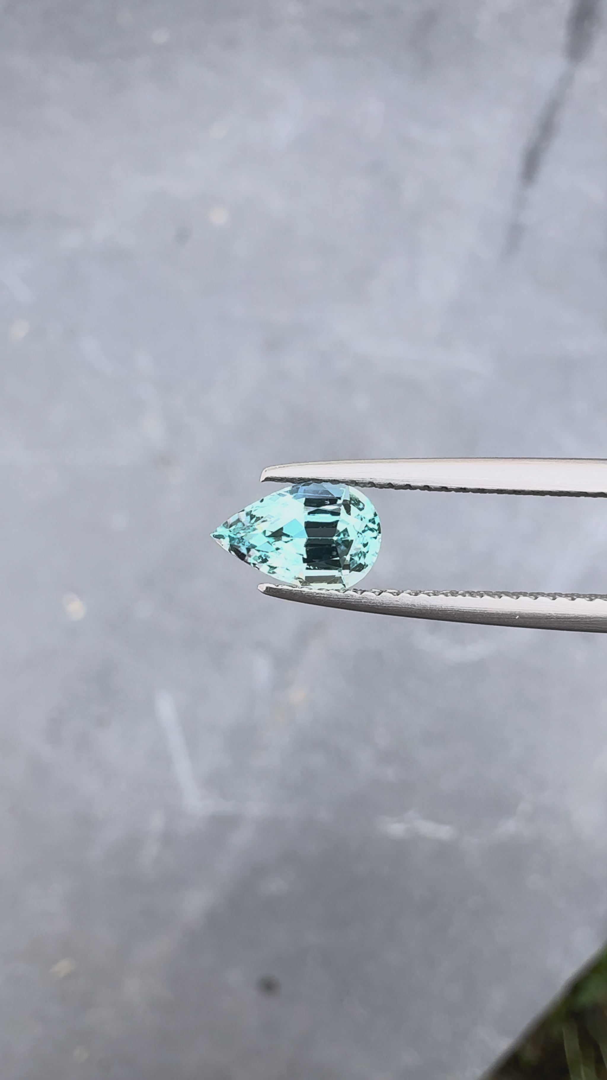 Aigue-marine naturelle de 0,9 carat présentant la teinte bleu ciel caractéristique de la variété Santa Maria. Cette pierre taille poire épouse élégamment les contours, maximisant la brillance et la profondeur de la couleur. L'aigue-marine Santa Maria, réputée pour son bleu pur et intense, constitue un choix privilégié pour les créations joaillières haut de gamme. Idéale pour un solitaire ou une pièce personnalisée, cette gemme allie rareté et sophistication intemporelle.