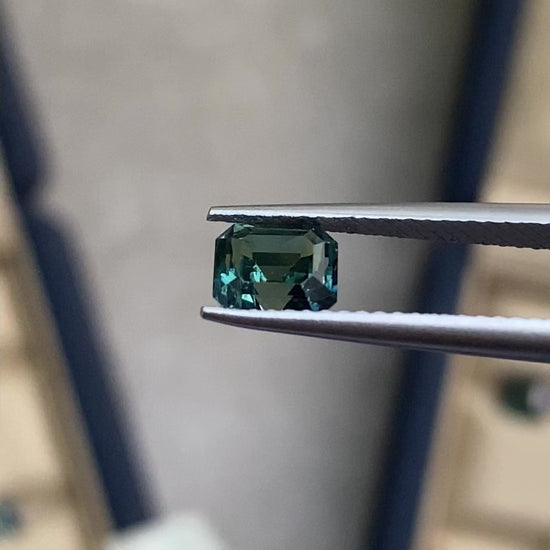 Saphir naturel de teinte teal captivant, pesant 1,38 carat et non chauffé. Cette pierre précieuse affiche une pureté eye clean, garantissant une clarté remarquable à l'œil nu. Taillée en rectangle, elle offre une présentation élégante et intemporelle.