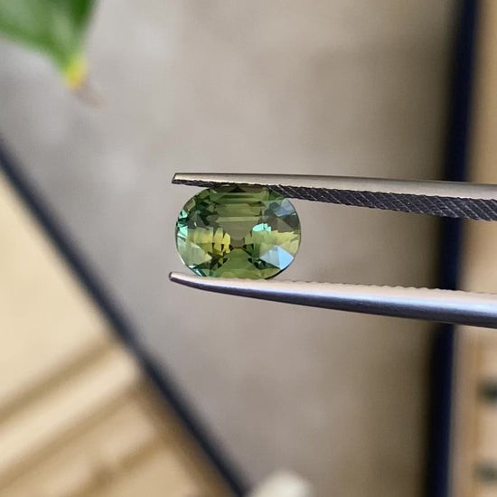 Saphir naturel aux teintes subtiles de teal, mariant harmonieusement les nuances vert-jaune dans une palette chromatique unique. Taillé en forme ovale, ce saphir de 2,72 carats séduira les collectionneurs en quête de pierres précieuses atypiques.