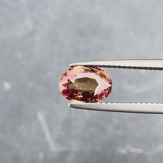 Saphir naturel de 1,73 carat présentant la teinte rare et prisée padparadscha, caractérisée par ses reflets orange cognac subtils. Cette pierre précieuse de taille ovale allie élégance intemporelle et singularité chromatique. Le padparadscha, l'une des variétés les plus recherchées du corindon, se distingue par sa rareté et sa valeur marchande supérieure.