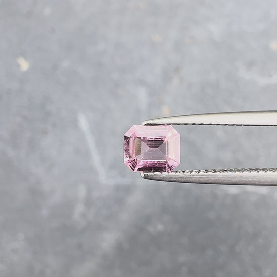 Saphir naturel de 0,71 carat aux teintes rosées, taillé en émeraude. Cette pierre précieuse combine la robustesse caractéristique du corindon avec une couleur délicate et sophistiquée. La taille émeraude, avec ses facettes géométriques, révèle la clarté et la profondeur de la pierre tout en optimisant son éclat. Idéal pour des créations joaillères d'exception, ce saphir rose offre une alternative élégante aux pierres plus conventionnelles.