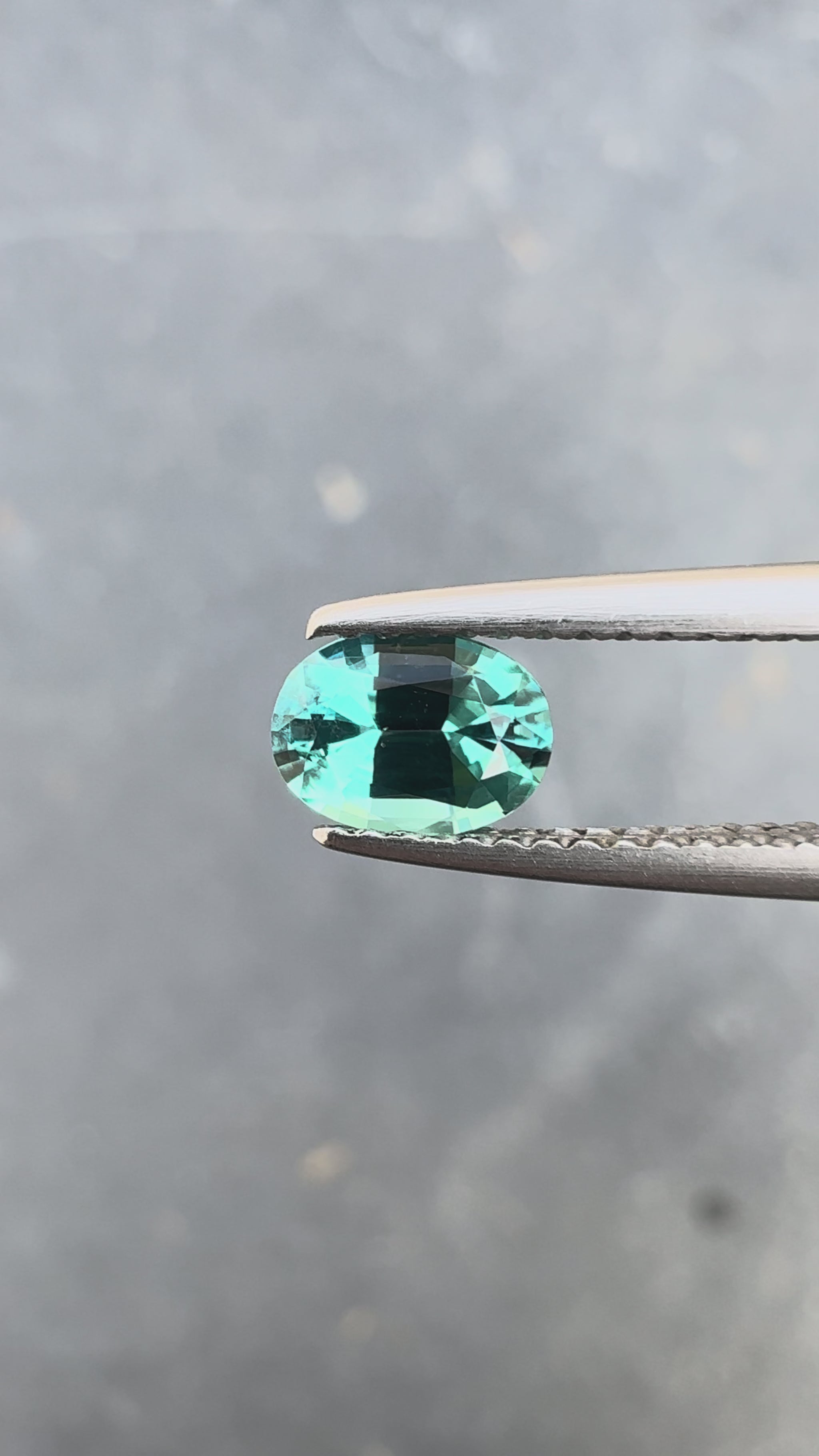 Tourmaline indicolite bleue de 0,63 carat, taille ovale. Cette variété rare de tourmaline se distingue par sa teinte bleu profond caractéristique de l'indicolite. Le poids de 0,63 carat offre une présence remarquable, tandis que la taille ovale optimise la brillance et met en valeur la saturation chromatique de la pierre. Idéale pour la création de bijoux haut de gamme, cette tourmaline naturelle combine rareté et élégance intemporelle.