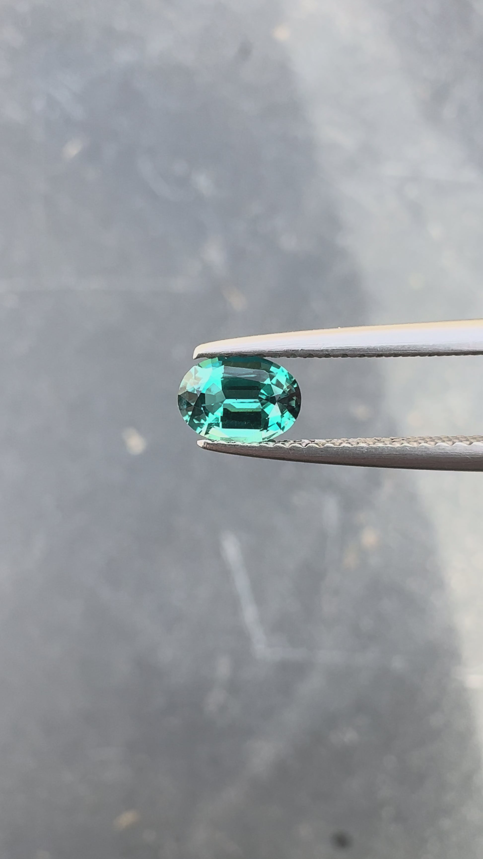 Tourmaline bleue indicolite de 0,66 carat taillée en ovale. Cette variété rare de tourmaline se distingue par sa teinte bleu profond caractéristique de l'indicolite. La pierre présente une excellente transparence et une brillance naturelle. Idéale pour les créations de joaillerie haut de gamme, elle offre une alternative sophistiquée aux pierres précieuses traditionnelles.