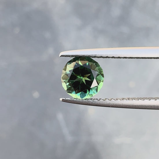 Tourmaline verte naturelle de 0,97 carat, taille ronde brillant. Cette pierre précieuse affiche une teinte verte profonde et caractéristique, prisée des collectionneurs et joailliers. La tourmaline verte symbolise l'équilibre et la vitalité. Idéale pour la création de bijoux sur mesure ou l'investissement en pierres fines. Certificat d'authenticité recommandé pour cette qualité de gemme.