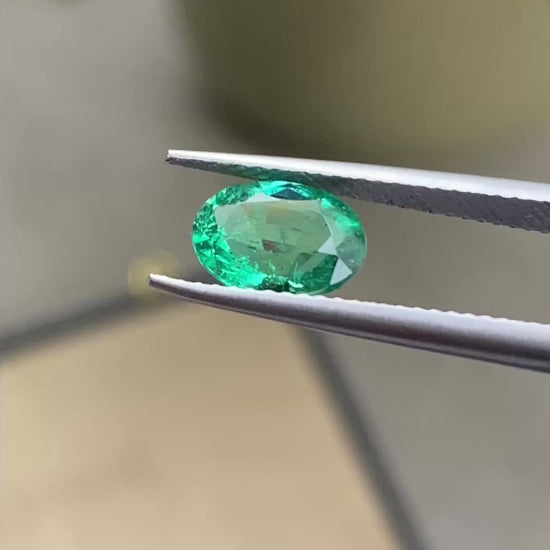Émeraude naturelle de Zambie aux teintes vert profond et captivant. Cette pierre précieuse de 1,62 carat présente une taille ovale élégante, mettant en valeur sa clarté et son éclat caractéristique. Originaire des gisements réputés de Zambie, elle offre cette couleur verte intense très recherchée.