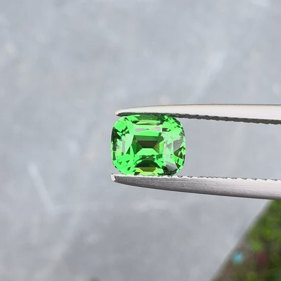 Grenat tsavorite de 1,56 carat présentant une teinte grenat profonde et captivante. Cette pierre précieuse affiche une belle saturation chromatique caractéristique du tsavorite, avec une taille coussin qui optimise son éclat et sa brillance. Idéale pour les créations joaillières haut de gamme, elle combine rareté et élégance naturelle. Une pièce de collection pour les amateurs de gemmes fines.
