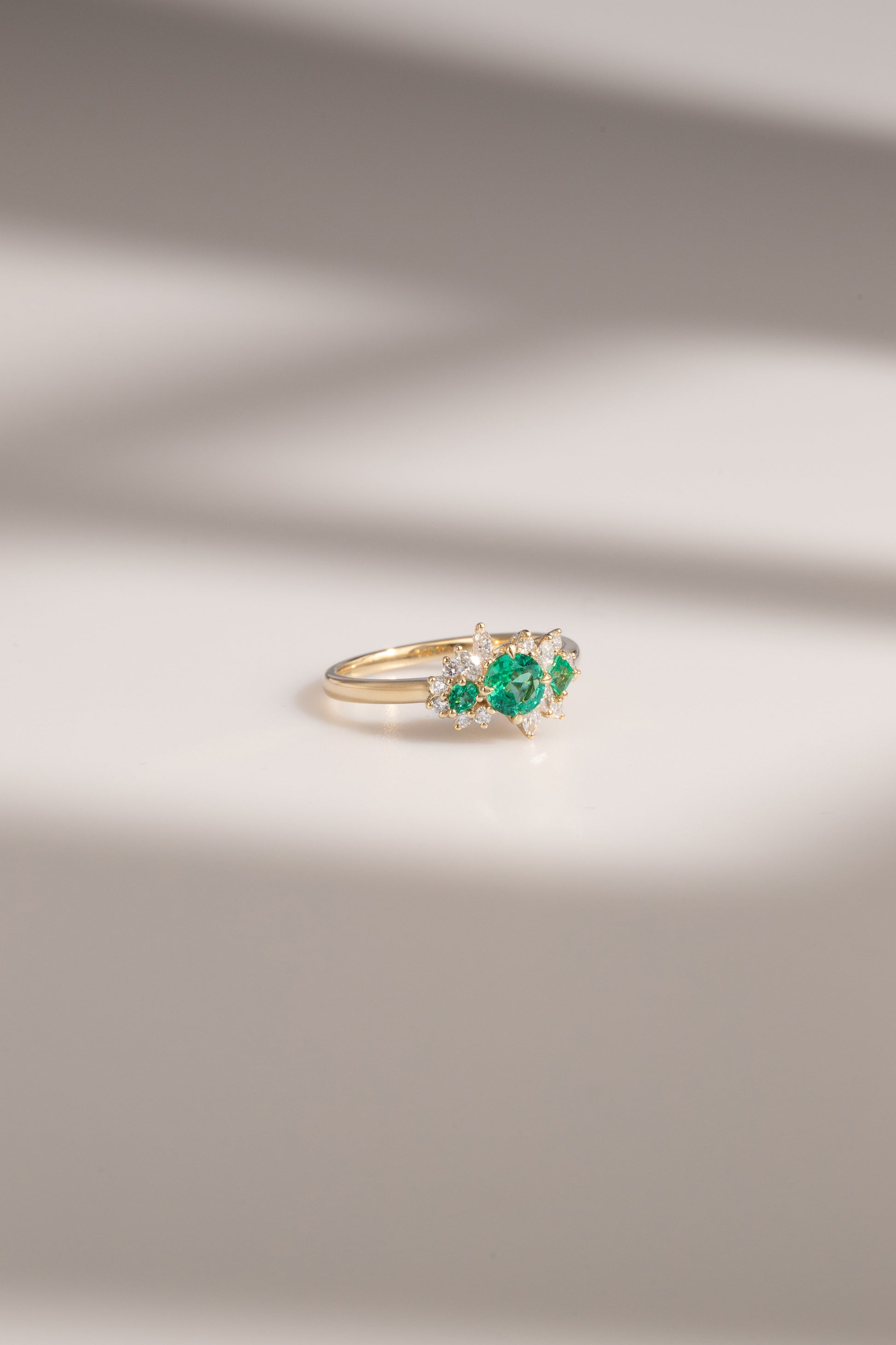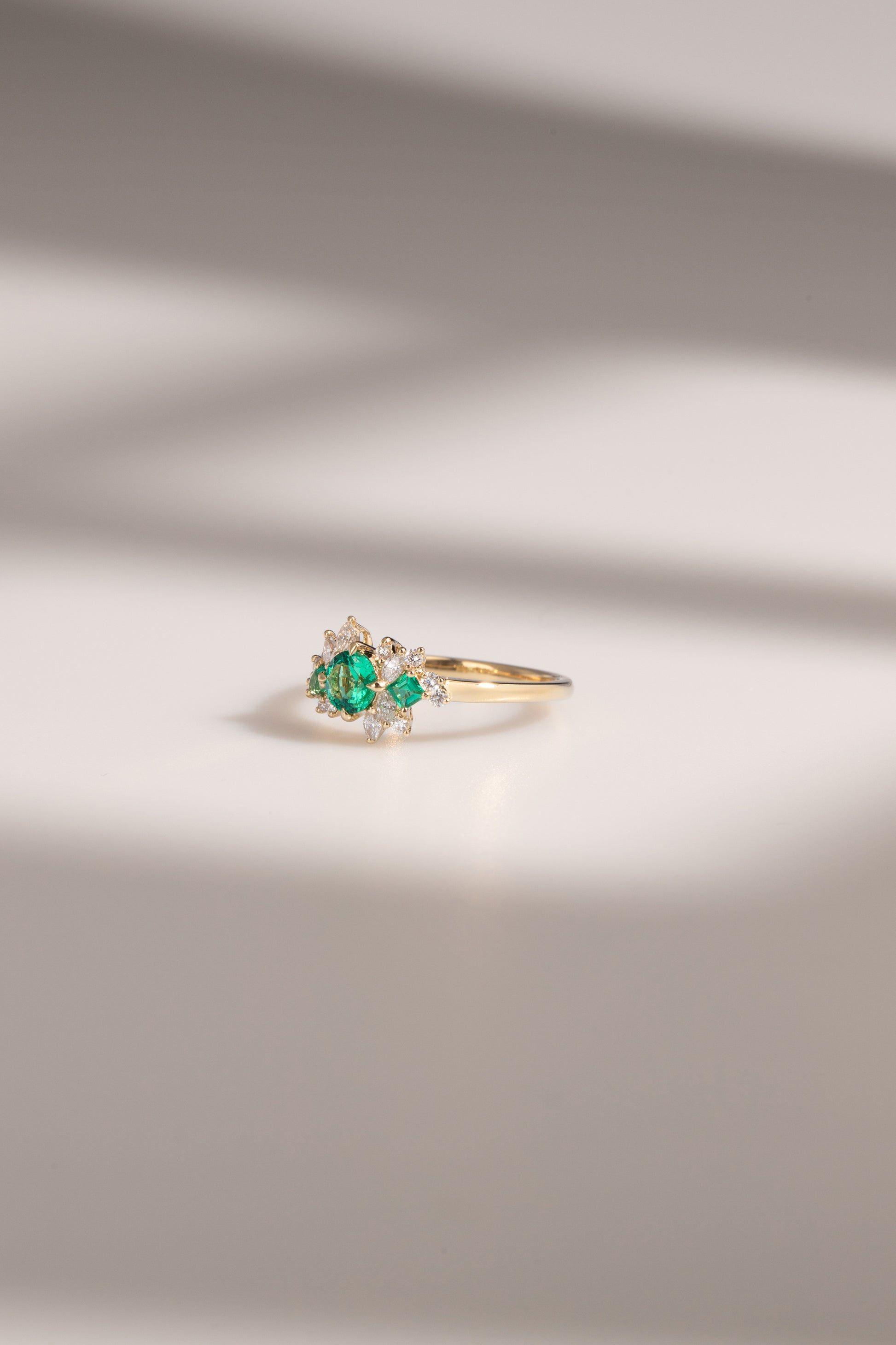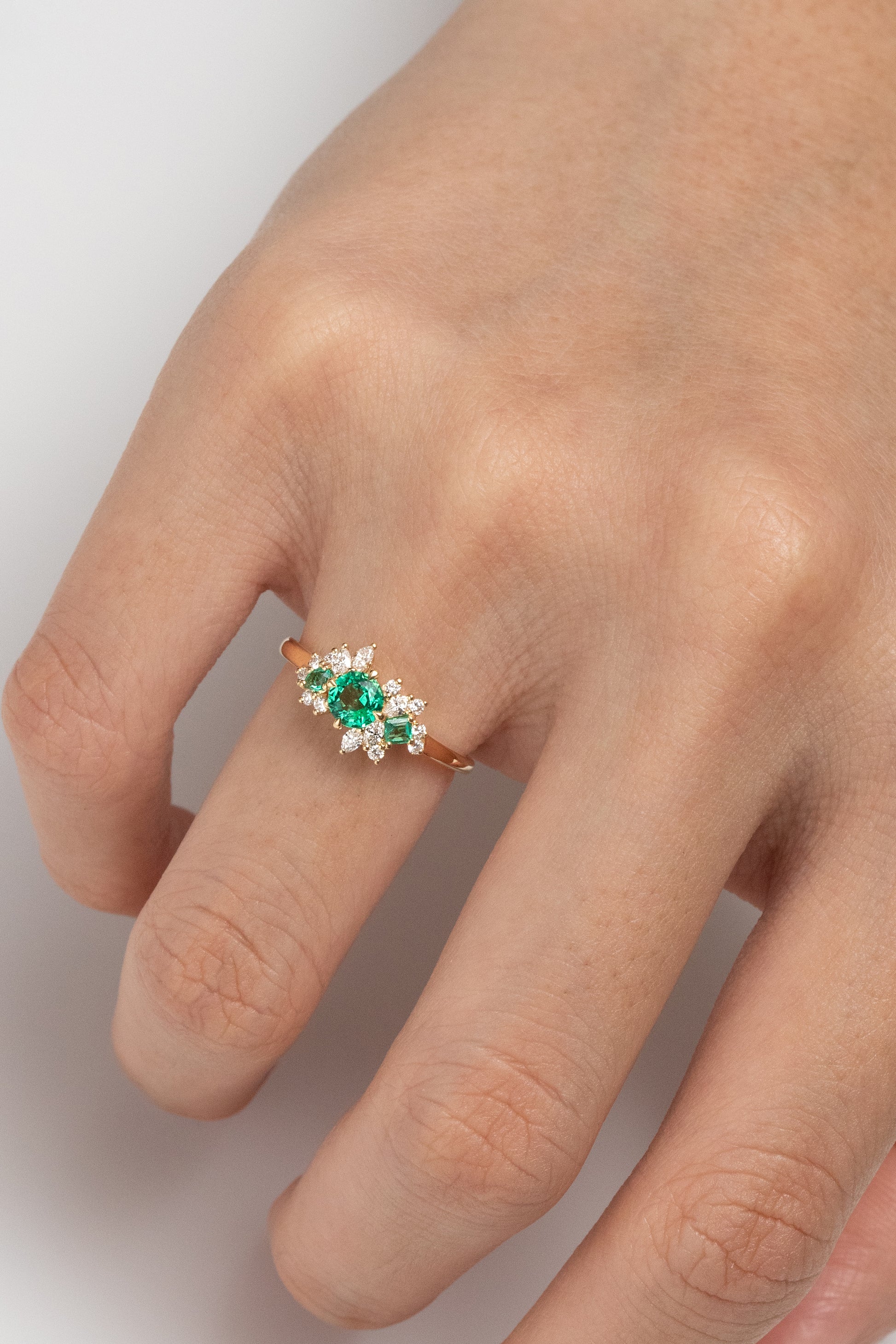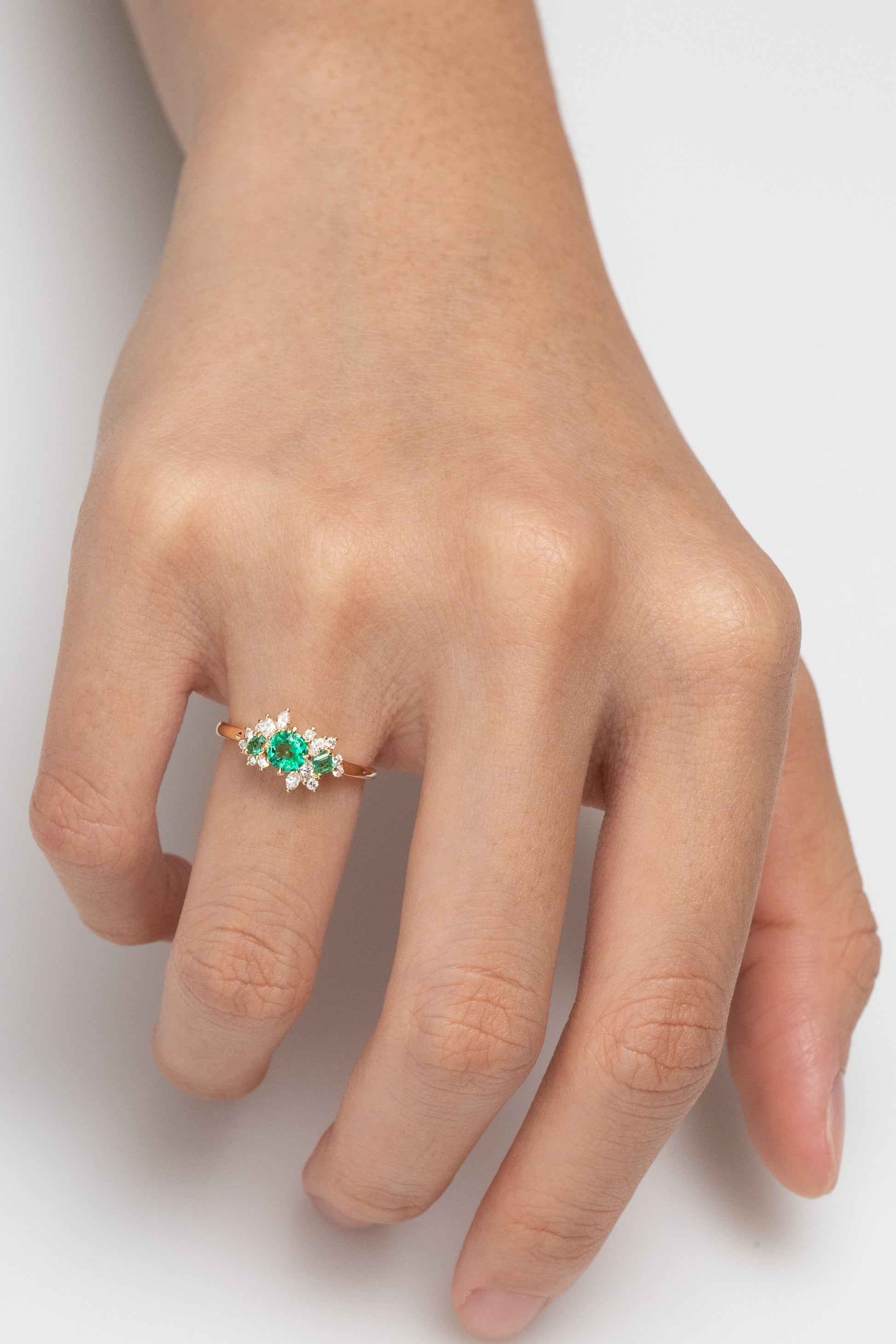 Bague raffinée en or jaune 18 carats, la Mini Bloom Emeraude associe l'éclat chaleureux du métal précieux à la profondeur des émeraudes authentiques. Les diamants, sertis avec précision, créent un contraste lumineux qui sublime les teintes vertes intenses des émeraudes. Cette composition joaillière allie tradition et modernité, offrant une pièce intemporelle aux proportions délicates.