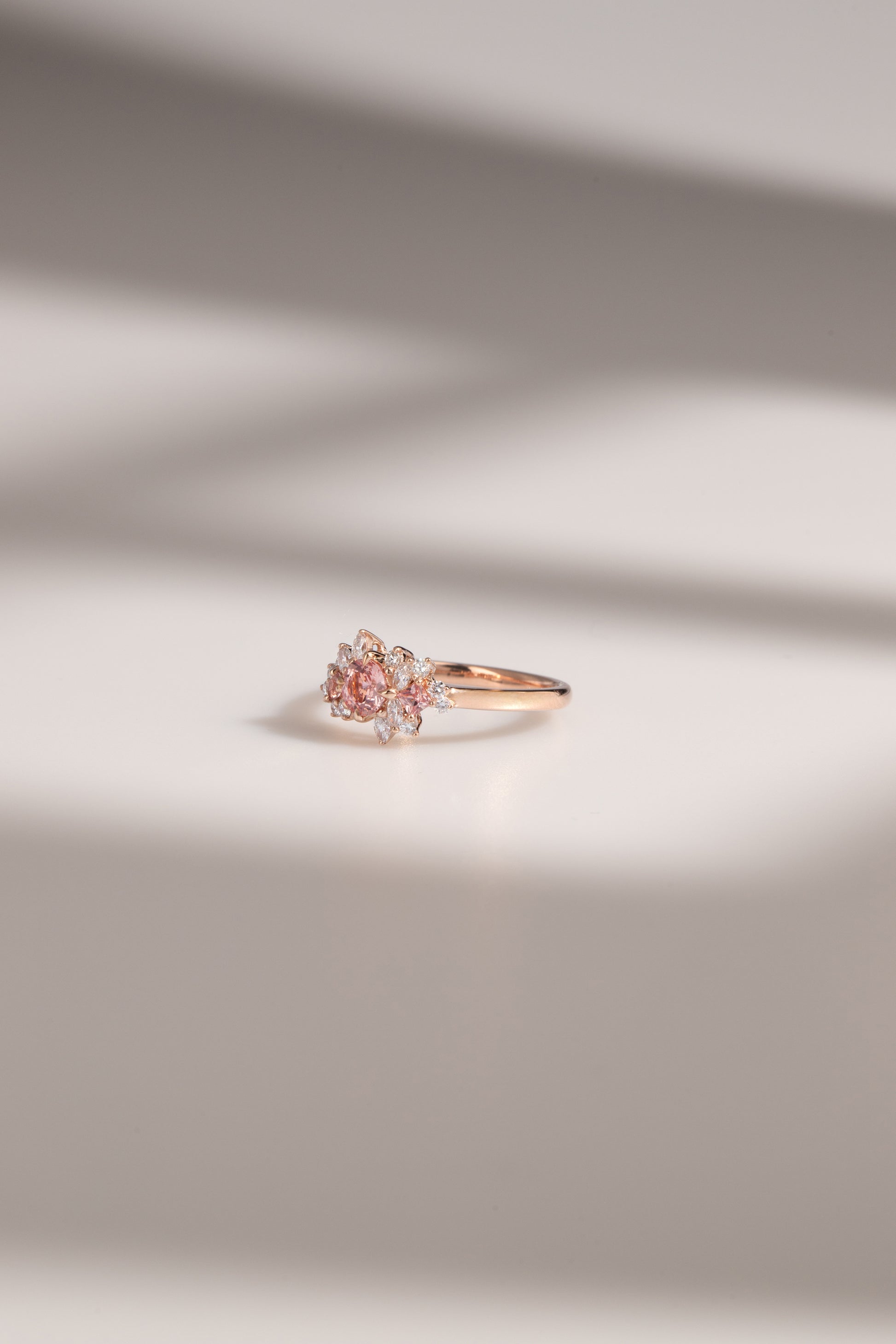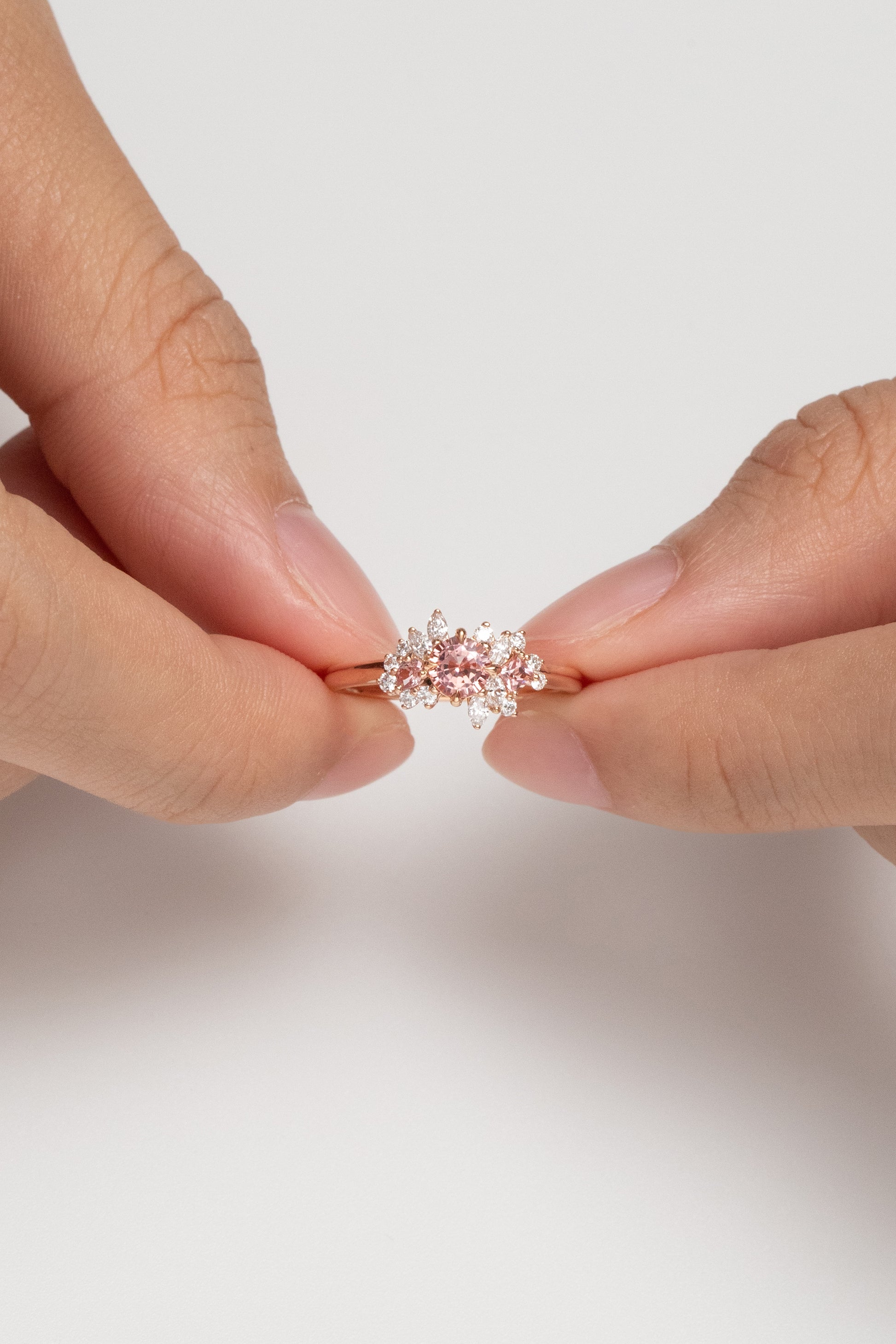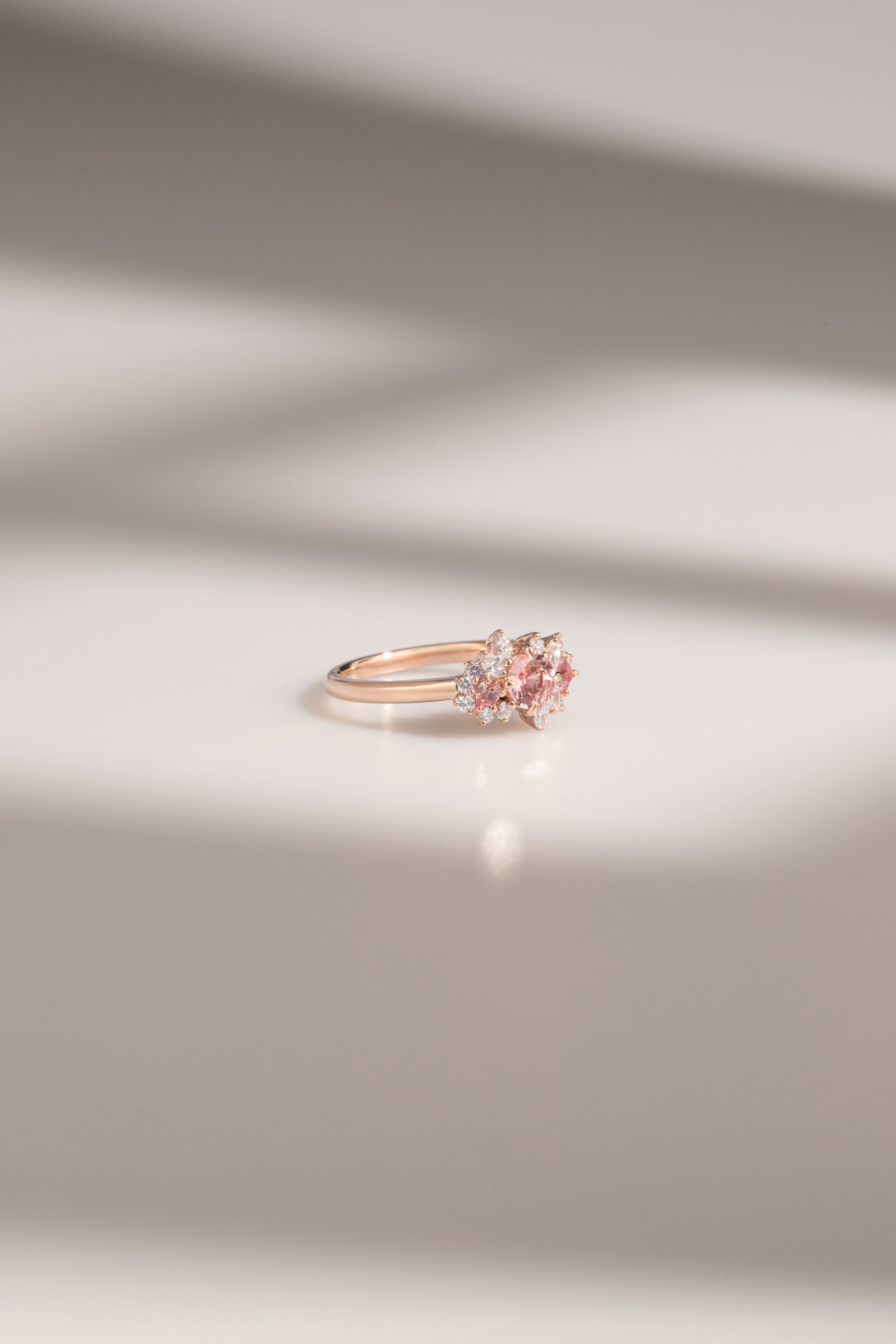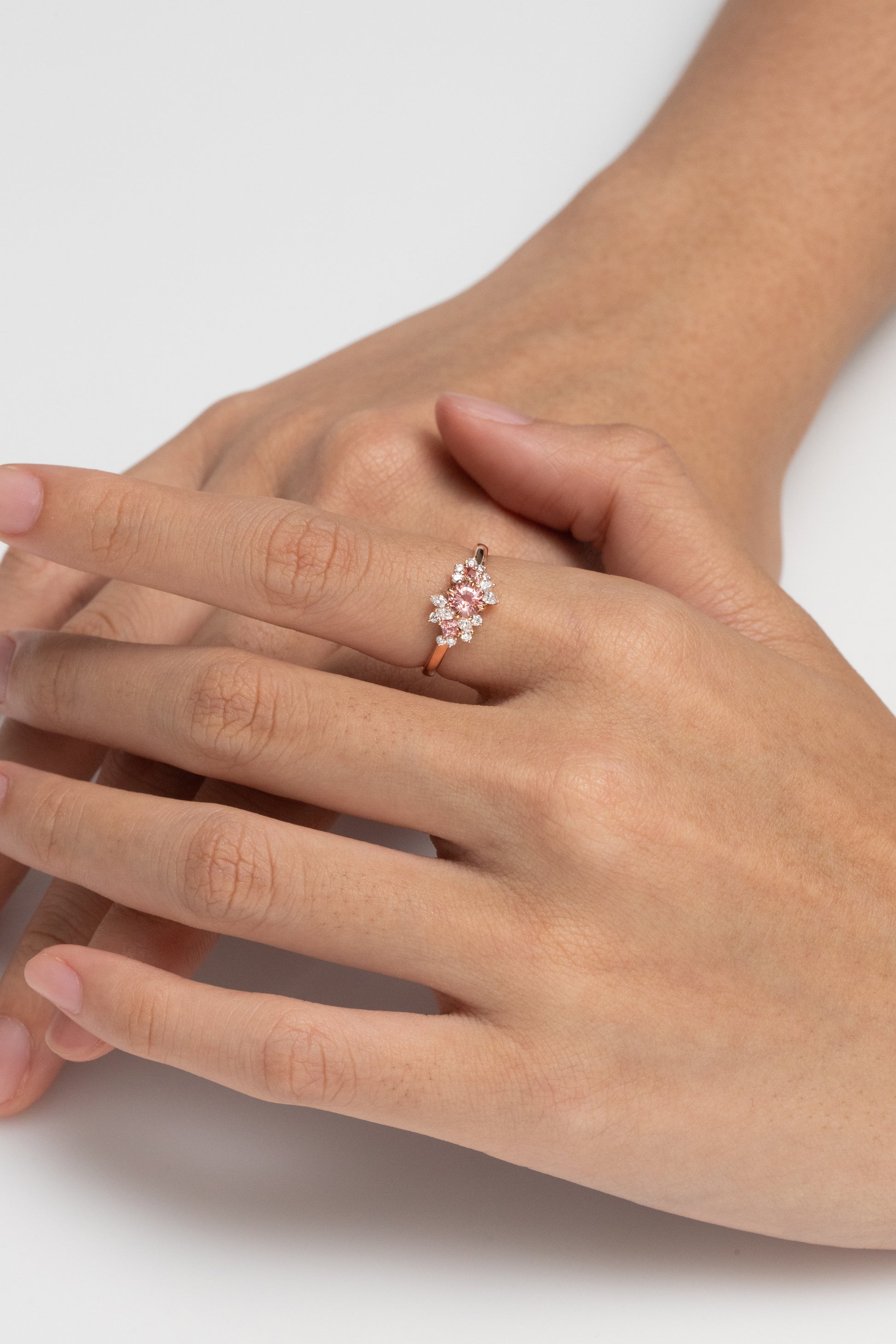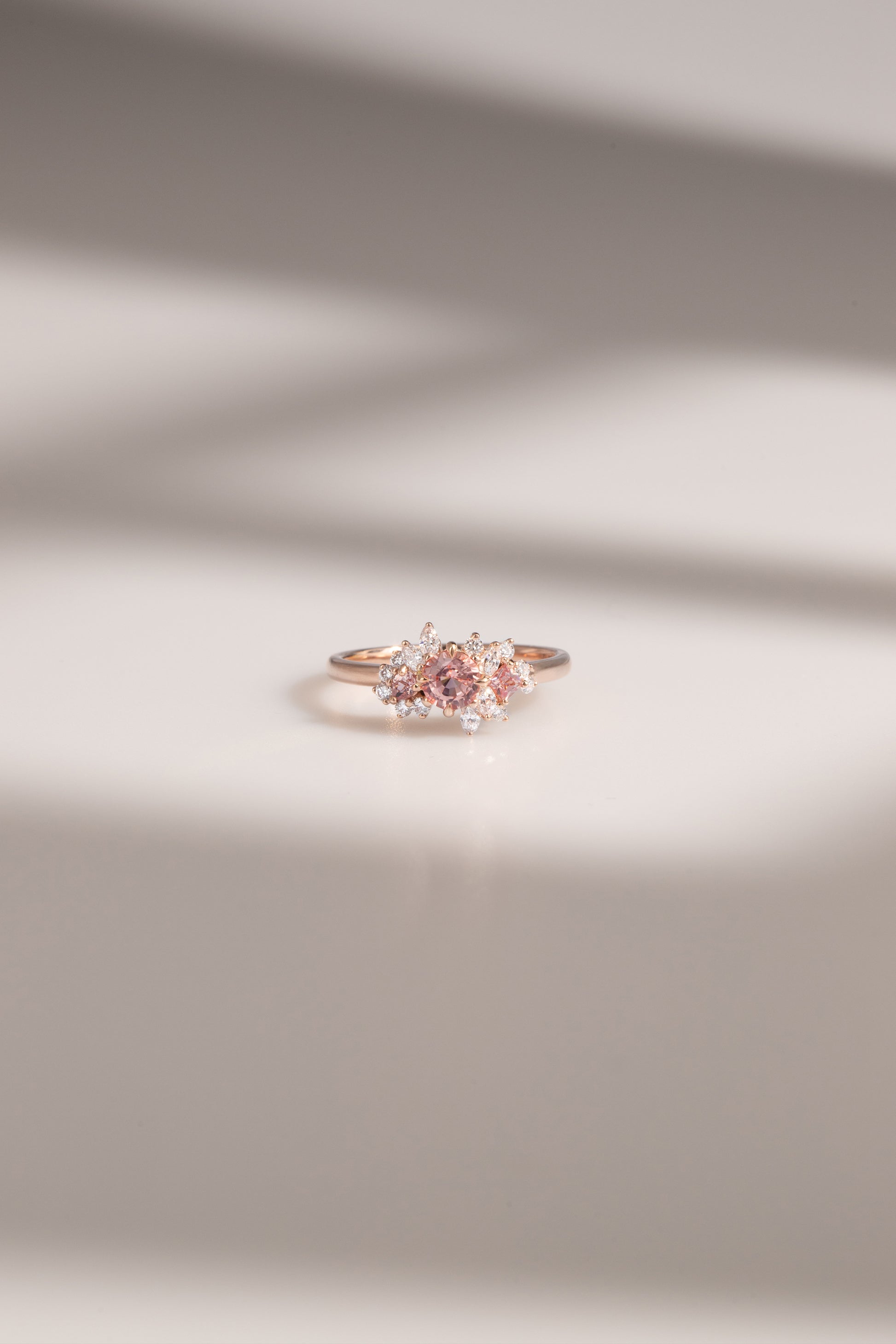 Découvrez la Mini Padparadscha Bloom, une bague d'exception alliant subtilité et raffinement. Son saphir padparadscha rond, aux teintes roses-orangées caractéristiques, s'épanouit délicatement au cœur d'une monture épurée. Les diamants qui l'entourent capturent la lumière avec discrétion, renforçant l'éclat naturel de la pierre précieuse sans surcharger le design. Cette création incarne l'élégance intemporelle : une pièce de joaillerie fine, portée au quotidien ou pour les occasions spéciales, qui affirme le goût de celle qui la porte.