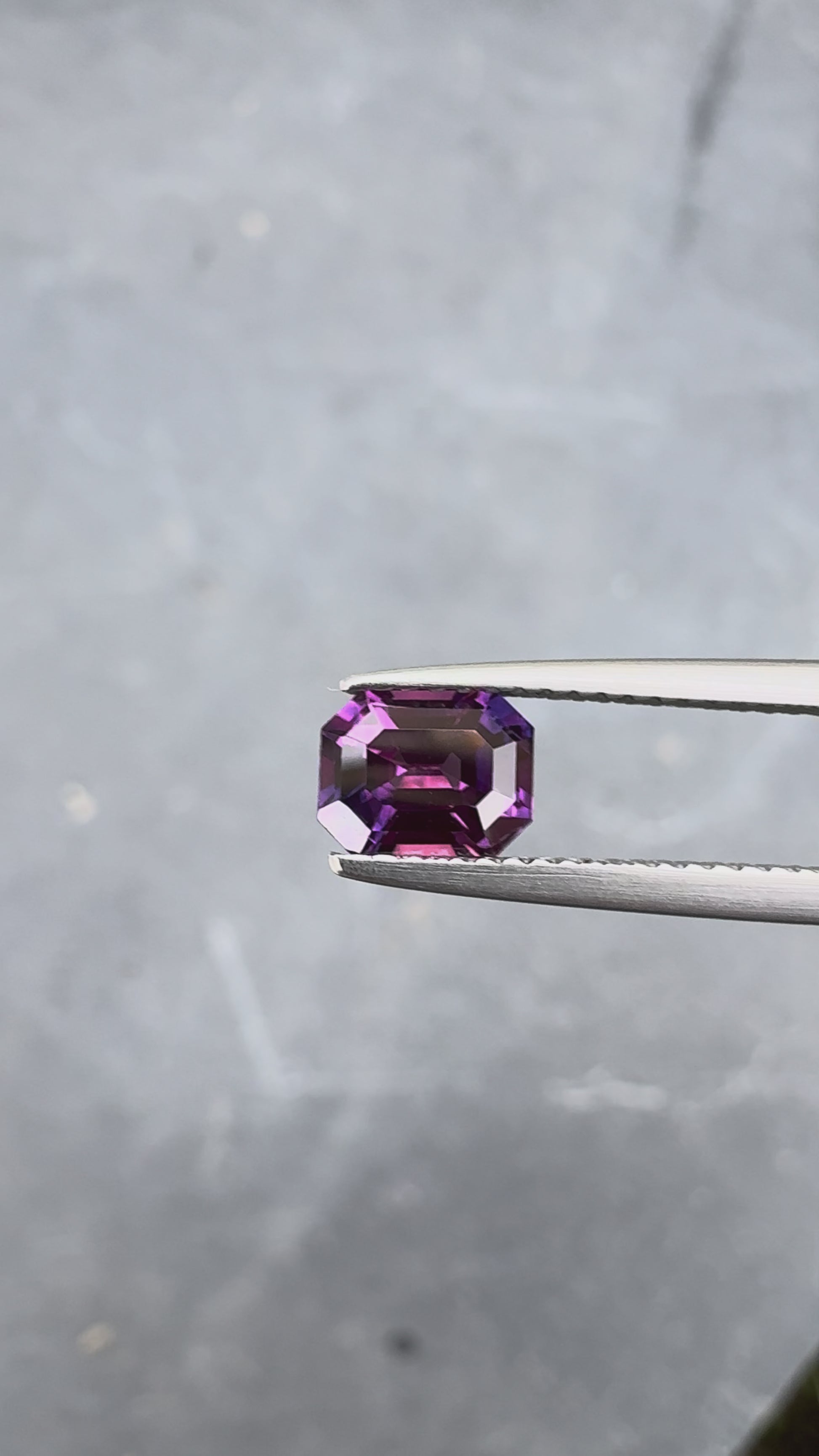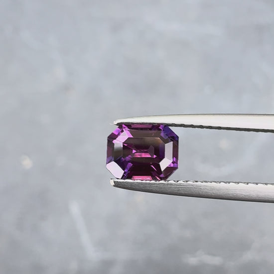 Saphir bicolore d'exception présentant une remarquable combinaison de violet et rose. Cette pierre de 1,26 carat affiche une taille émeraude qui met en valeur sa clarté et ses teintes naturelles. Le saphir bicolore est apprécié des collectionneurs pour son caractère unique et sa rareté. Avec sa géométrie épurée et ses proportions harmonieuses, cette pierre constitue un choix idéal pour une création joaillière sophistiquée. Une gemme authentique aux qualités gemmologiques remarquables.