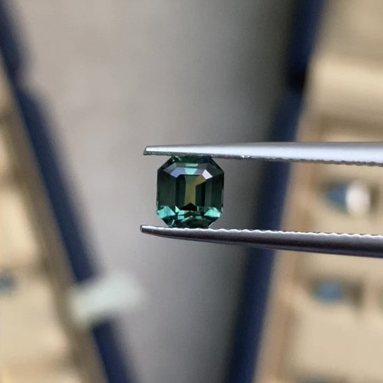 Saphir teal naturel de Madagascar, 1,00 carat, taille émeraude. Cette pierre précieuse non chauffée affiche une pureté eye clean, garantissant une transparence impeccable à l'œil nu. Sa teinte bleu-vert distinctive et sa provenance malgache en font une acquisition de choix pour les collectionneurs et les joailliers exigeants. Certificat d'authenticité recommandé pour cette gemme de qualité supérieure.