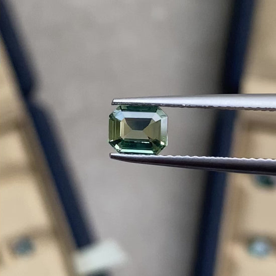 Saphir naturel de Madagascar aux teintes captivantes de bleu-vert, d'une pureté remarquable. Cette pierre de 0,7 carat présente une couleur teal distinctive, oscillant entre le bleu profond et les nuances vertes caractéristiques des saphirs malgaches. Taille rectangle épousant parfaitement les contours de la gemme pour sublimer son éclat naturel.