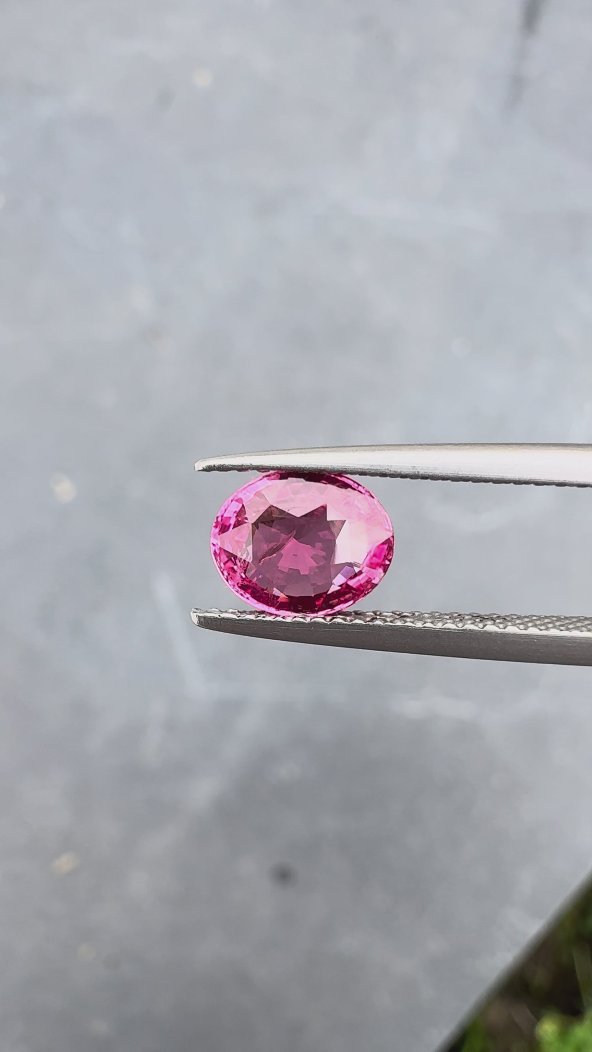 Spinelle de Mahenge d'une exceptionnelle limpidité, taillée en ovale pour sublimer sa brillance naturelle. Cette pierre de 1,56 carat révèle une clarté remarquable, caractéristique des meilleures spinelles de cette région tanzanienne réputée. Sa teinte profonde et son éclat cristallin en font une gemme de choix pour les collectionneurs et les créations joaillières exigeantes. Une pièce rare combinant pureté optique et intensité chromatique.