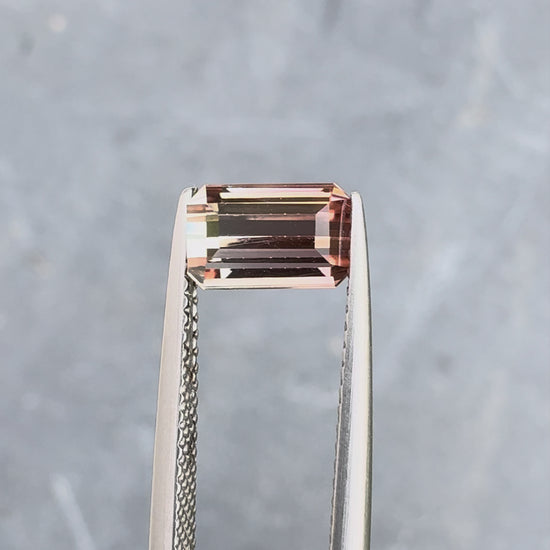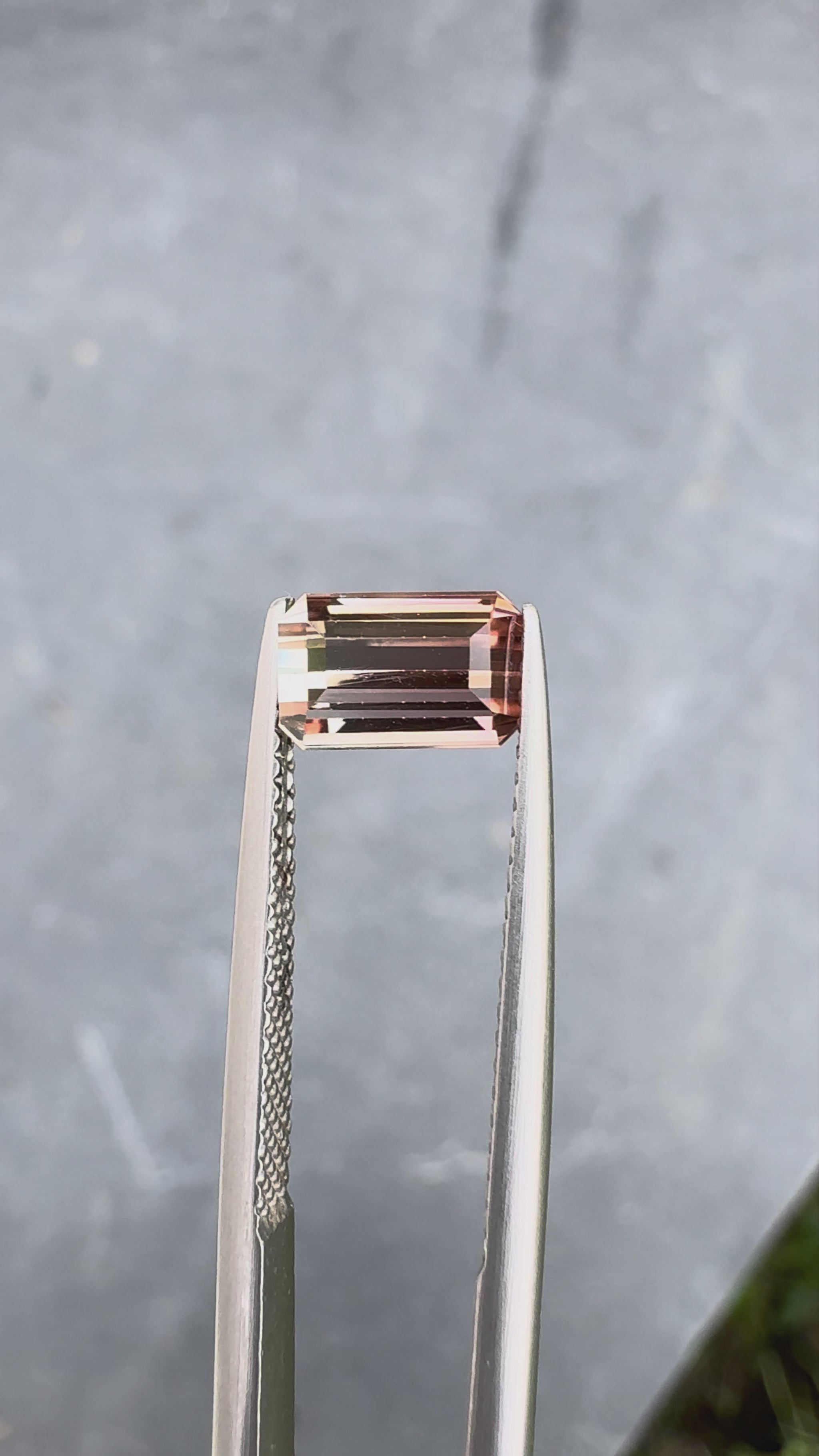 Tourmaline melon d'eau exceptionnelle de 1,61 carat, taillée en émeraude. Cette gemme captivante révèle les teintes caractéristiques du melon d'eau avec ses zones rose et vert harmonieuses. La taille émeraude met en valeur la transparence et la brillance de la pierre, offrant une présentation classique et élégante. Idéale pour les collectionneurs et les créateurs de bijoux en quête d'une tourmaline de qualité supérieure aux propriétés optiques remarquables.