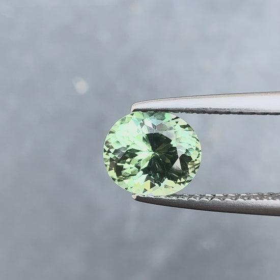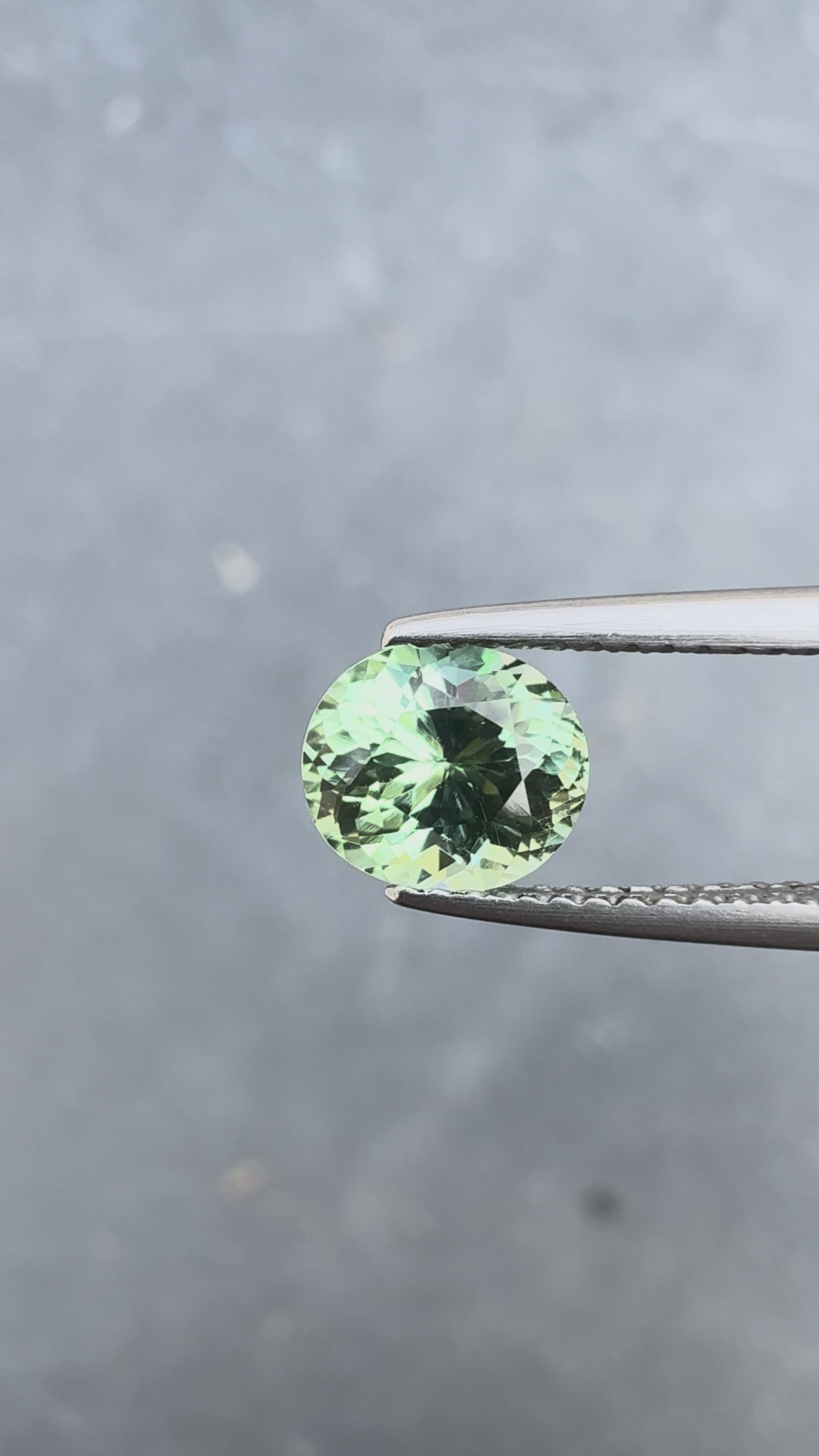 Tourmaline naturelle de 1,26 carat présentant une teinte verte claire particulièrement lumineuse. Cette pierre de forme ovale affiche une excellente transparence et une brillance remarquable. Idéale pour la création de bijoux haut de gamme, elle séduira les collectionneurs et les amateurs de gemmes fines en quête d'authenticité et de qualité. Une belle acquisition pour tout projet joaillier exigeant.
