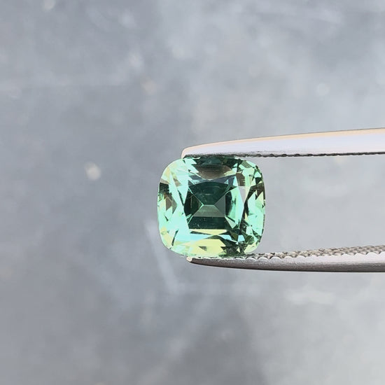 Tourmaline bleue-verte de 2,29 carats présentant une belle transparence et une teinte équilibrée. Cette pierre de coussin affiche les caractéristiques prisées des tourmalines de qualité : une couleur vibrante et une clarté remarquable. Idéale pour la joaillerie haut de gamme, elle offre une alternative élégante aux pierres précieuses traditionnelles. Certificat recommandé pour authentification.