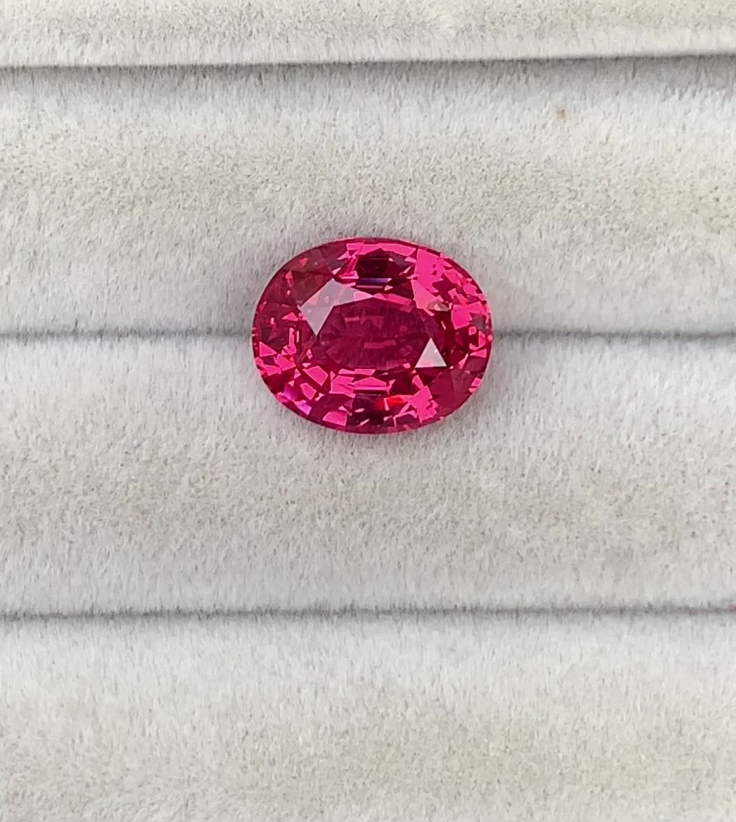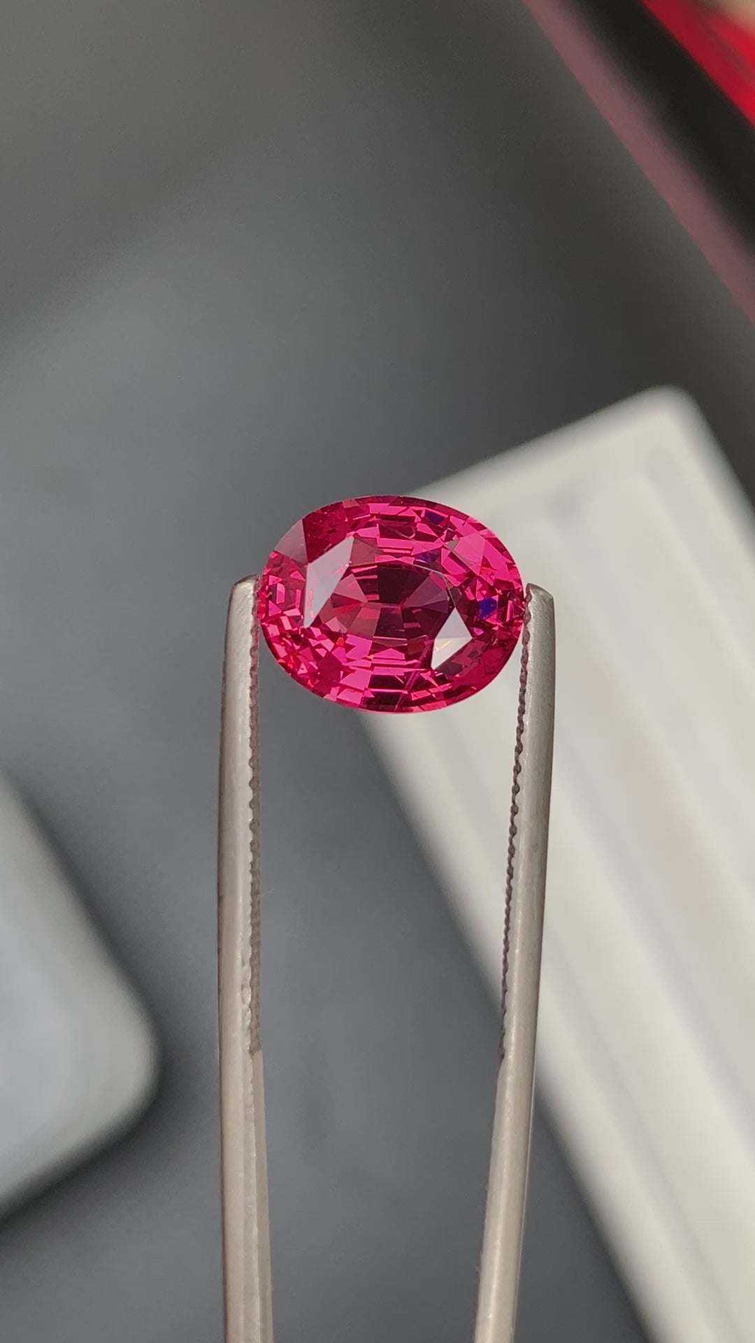 这颗5.00克拉的粉色尖晶石是一颗稀有且迷人的宝石,拥有鲜艳的粉色调,立即吸引目光。其晶莹剔透的质地和完美的切工展现出璀璨光彩,尽显优雅与高贵。非常适合作为高级珠宝的主石,这颗独特的宝石将为任何收藏增添一抹奢华与精致。