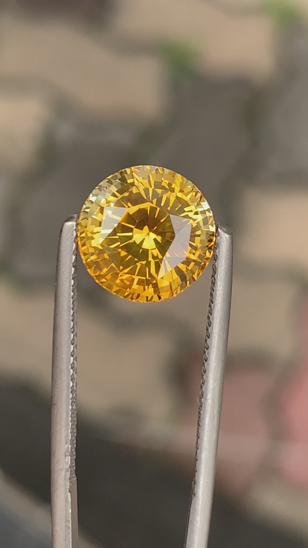 圆形黄色蓝宝石,净度佳,9.60x7.80毫米