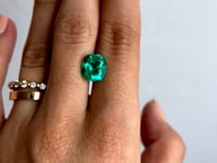 来自哥伦比亚的华丽3.15克拉垫形祖母绿。这颗宝石展现出极为罕见且令人惊叹的色彩。绿色浓郁,略带蓝色调,进一步提升了其色泽。这是一颗非常适合用于定制非凡珠宝作品的宝石。