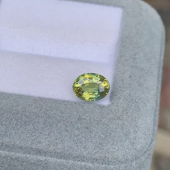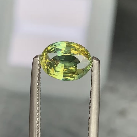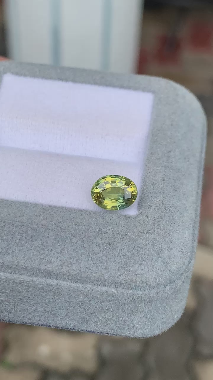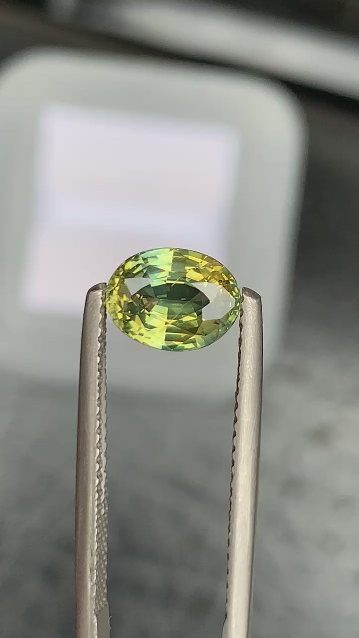 2.04克拉黄绿色双色蓝宝石,椭圆形切割,产自马达加斯加。