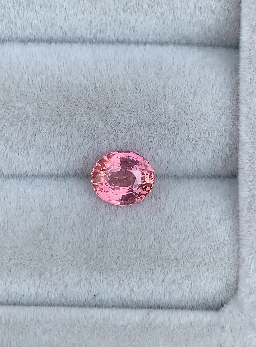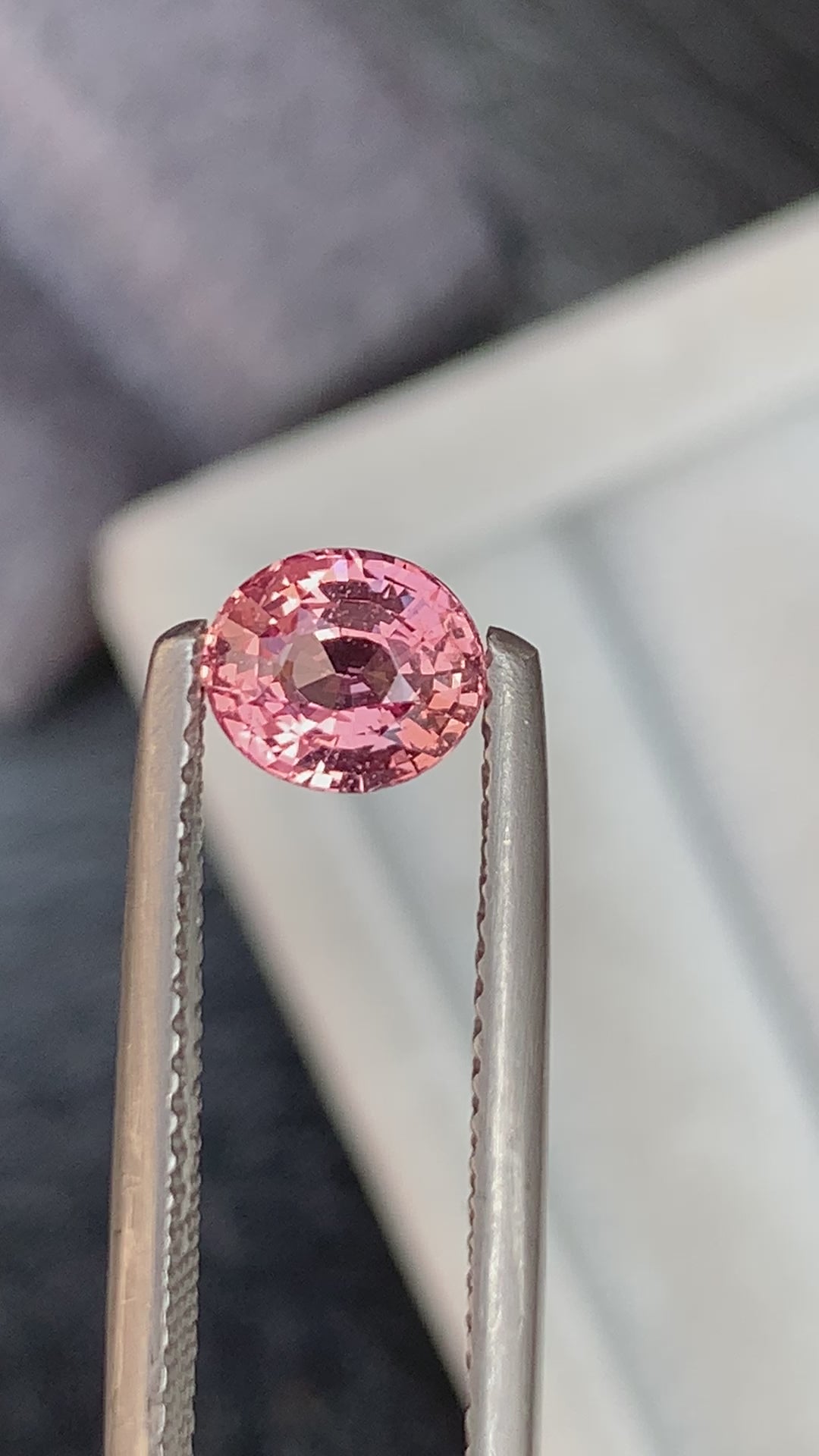 这是一颗来自马达加斯加的帕帕拉恰蓝宝石,重1.07克拉,极为珍贵。其椭圆形切工突显出精致迷人的色彩,巧妙融合了粉色与橙色的色调。拥有完美净度(肉眼无瑕),这颗稀有宝石是打造高贵精致珠宝的理想之选。