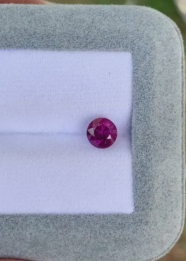 Un saphir rose intense de 1,50ct, taillé en rond classique. Chauffé pour sublimer son éclat, ce joyau de Madagascar rayonne d’intensité et de charme.