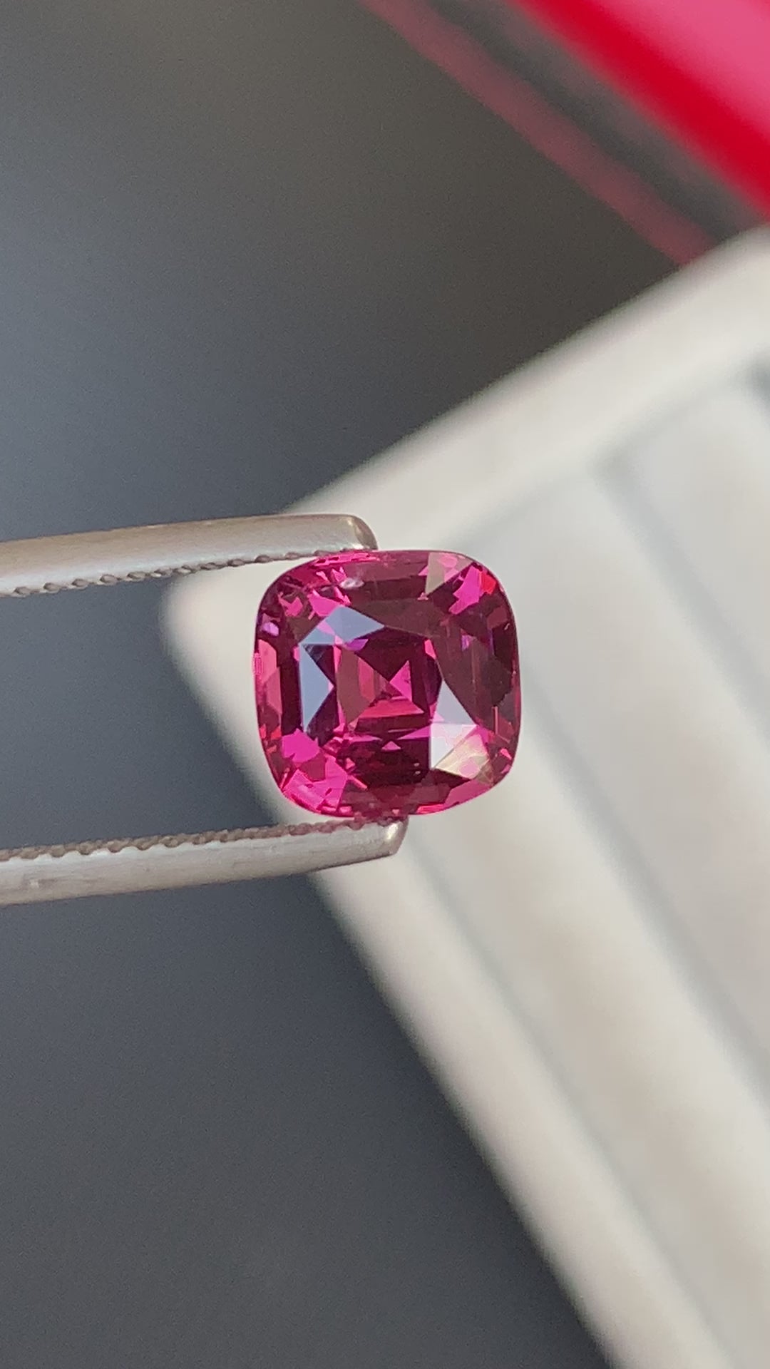 这颗3.02克拉的粉色尖晶石,略带内含物,产自坦桑尼亚的马亨盖。其细微的内含物丝毫不影响其鲜艳的色彩和卓越的光彩,使这颗宝石成为罕见而高雅的选择。