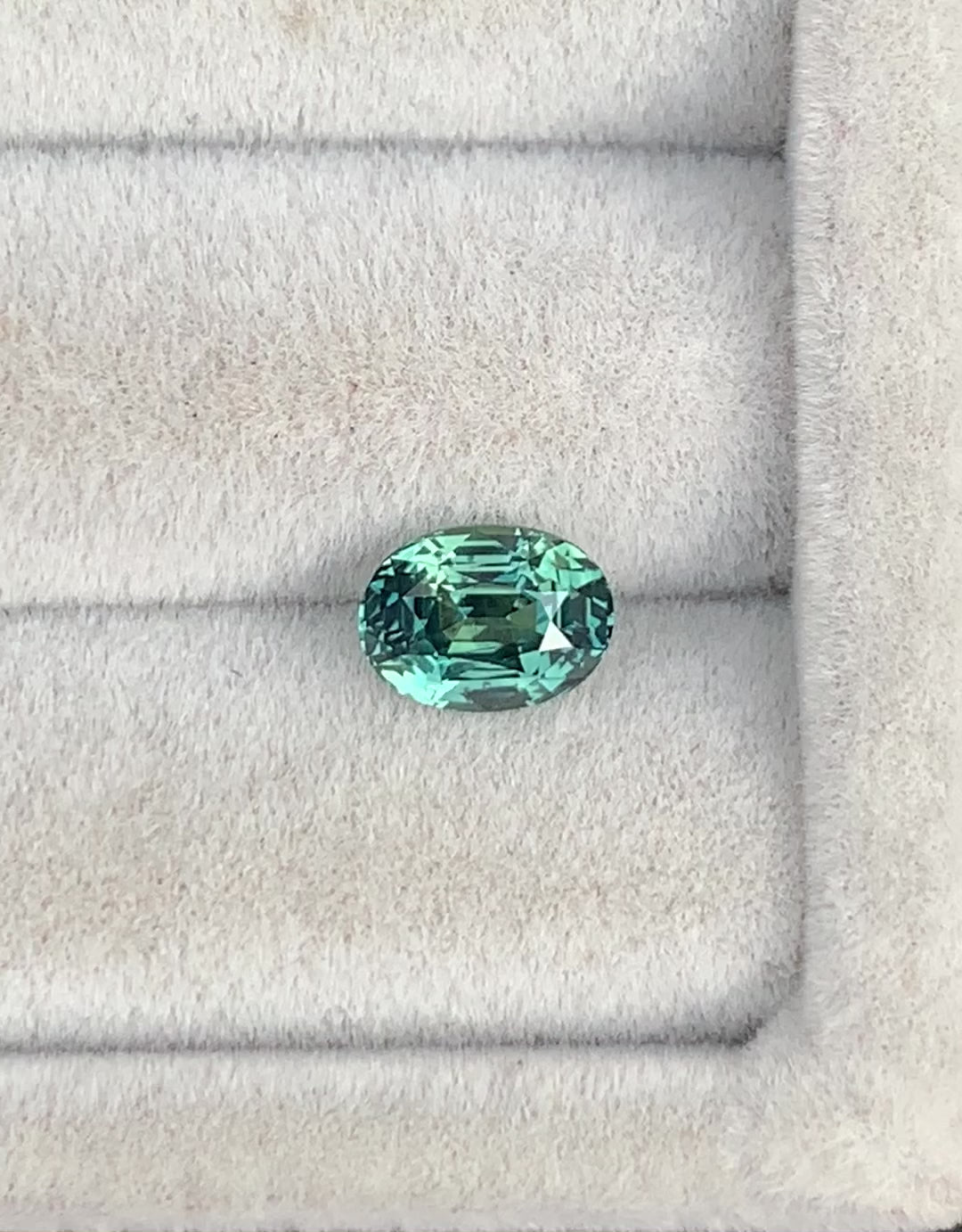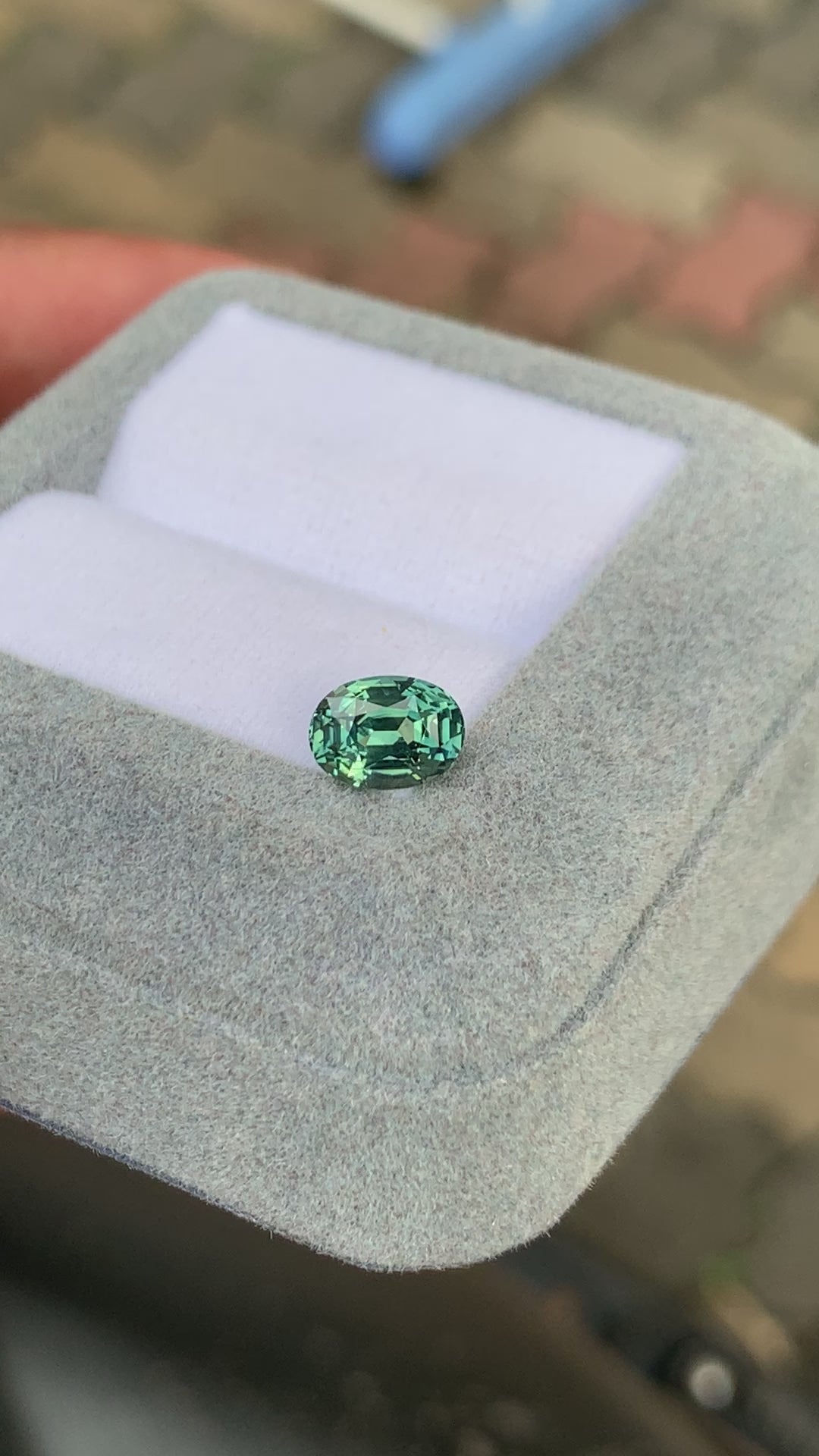 这颗1.65克拉的孔雀蓝蓝宝石产自马达加斯加,以其介于蓝色与绿色之间的迷人色调而著称。未经加热处理,保留了其全部天然纯净。其优雅的椭圆形切工和“肉眼无瑕”的净度,无可见内含物,使这颗宝石成为罕见珍品,非常适合用于精致的珠宝设计。