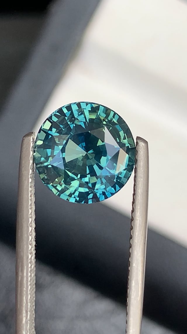 精美的 5.52克拉圆形切割孔雀蓝蓝宝石。这颗宝石因其明亮通透的颜色而格外美丽且稀有。该宝石未经加热处理,因此是投资或定制戒指的理想选择。